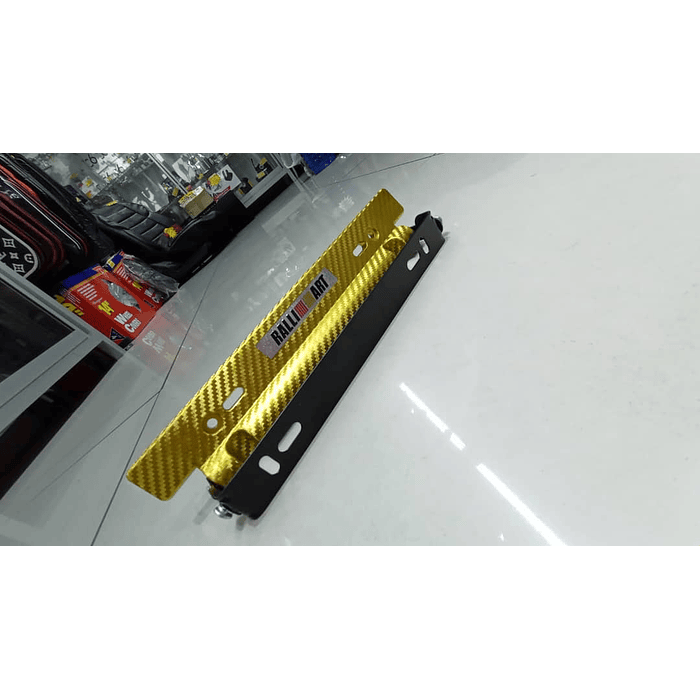 X1 Porta placa patente de autos universal tunning tipo fibra de carbono amarillo dorado marca ralli art precio 6490 pesos