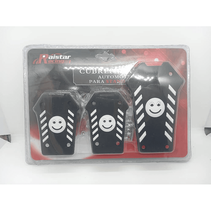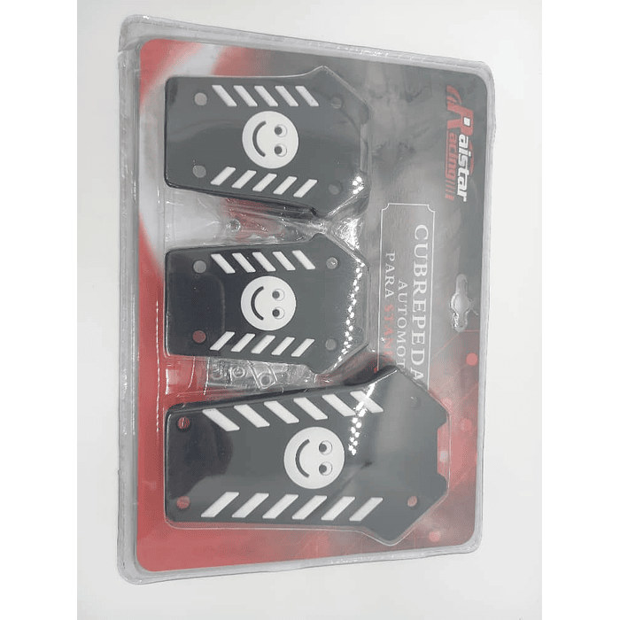 Set cubre pedales de auto diseño carita feliz 3 piezas de aluminio y goma tunning universal para autos manuales colores Negro con blanco precio 4990 pesos
